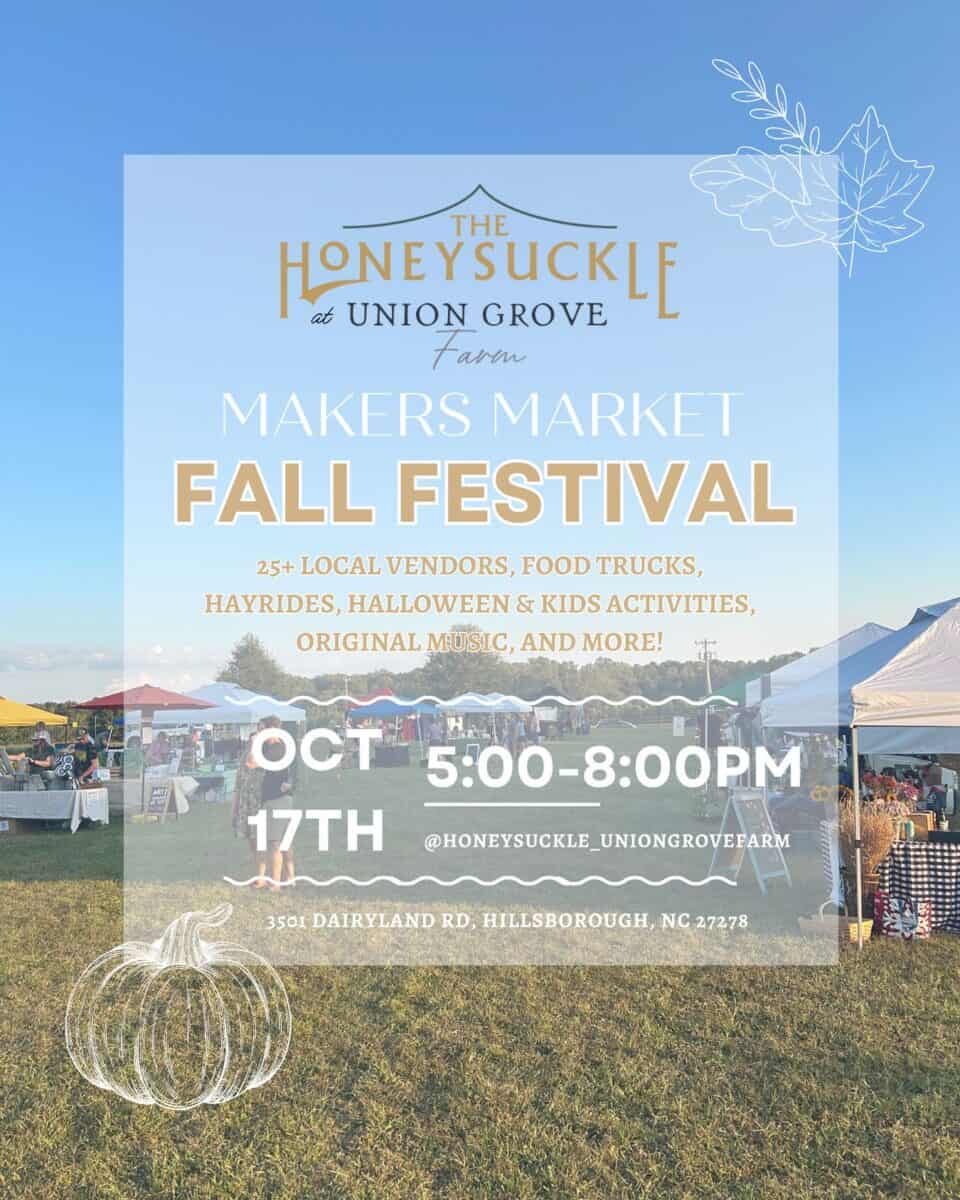 ๐Ÿ‚ Looking for fall fun for the whole family? Join us for our Makers Market Fall Festival next Friday, October 17th from 5โ€“8PM at Honeysuckle at Union Grove Farm!