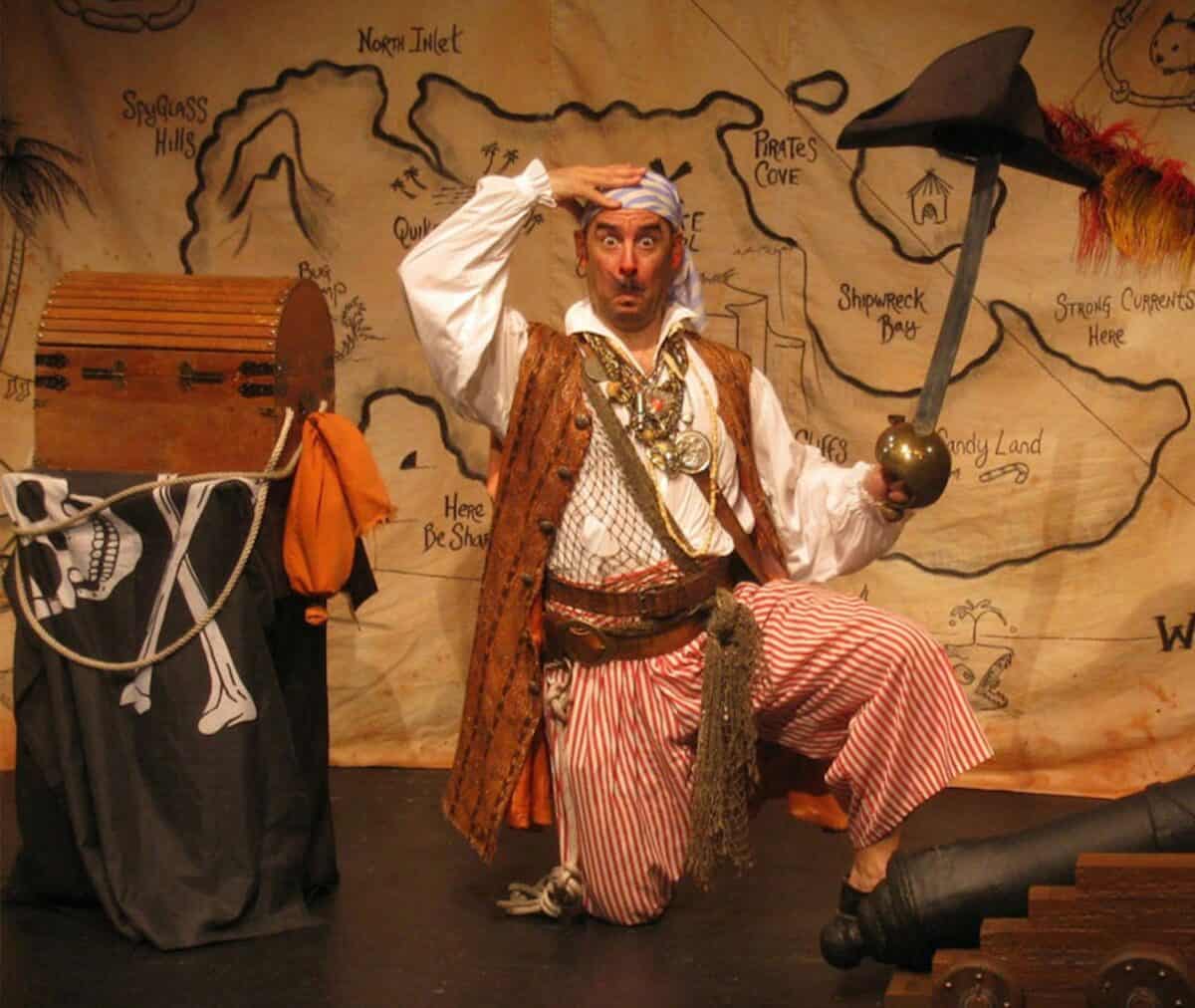 Children have a natural fascination for adventure and the pirates’ life on the high seas. With eye-popping puppetry, eccentric props, and slapstick sword play, Pirate School is a riotous, interactive variety show suitable for ages 4 and up. Where else can you find a talking skull and the world’s only wearable pirate ship?