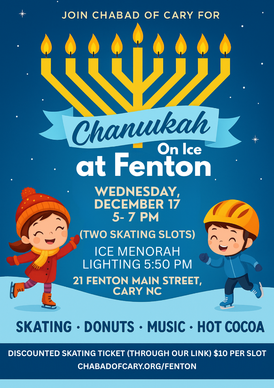 Lace up and light up! Join us at Fenton for Chanukah on Ice — Community skating, Chanukah tunes, warm drinks, ...