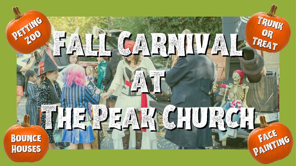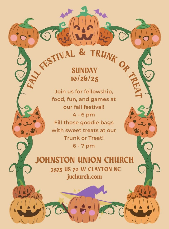 From 4-6pm enjoy food, fun, and games at our Fall Festival…followed by candy from 6-7pm at Trunk-or-Treat.