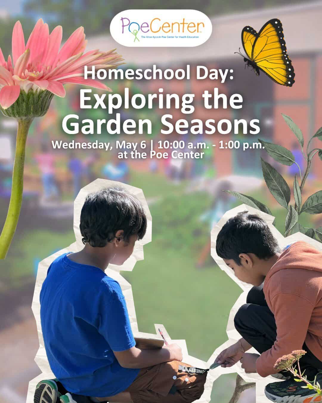Homeschool Day: Exploring the Garden Seasons May 6 @ 10:00 am - 1:00 pm Poe Center for Health Education 224 Sunnybrook Rd., Raleigh Homeschool Day at the Poe Center is designed for homeschool students providing opportunities to interact with peers and other co-ops. ... Read more $12.50