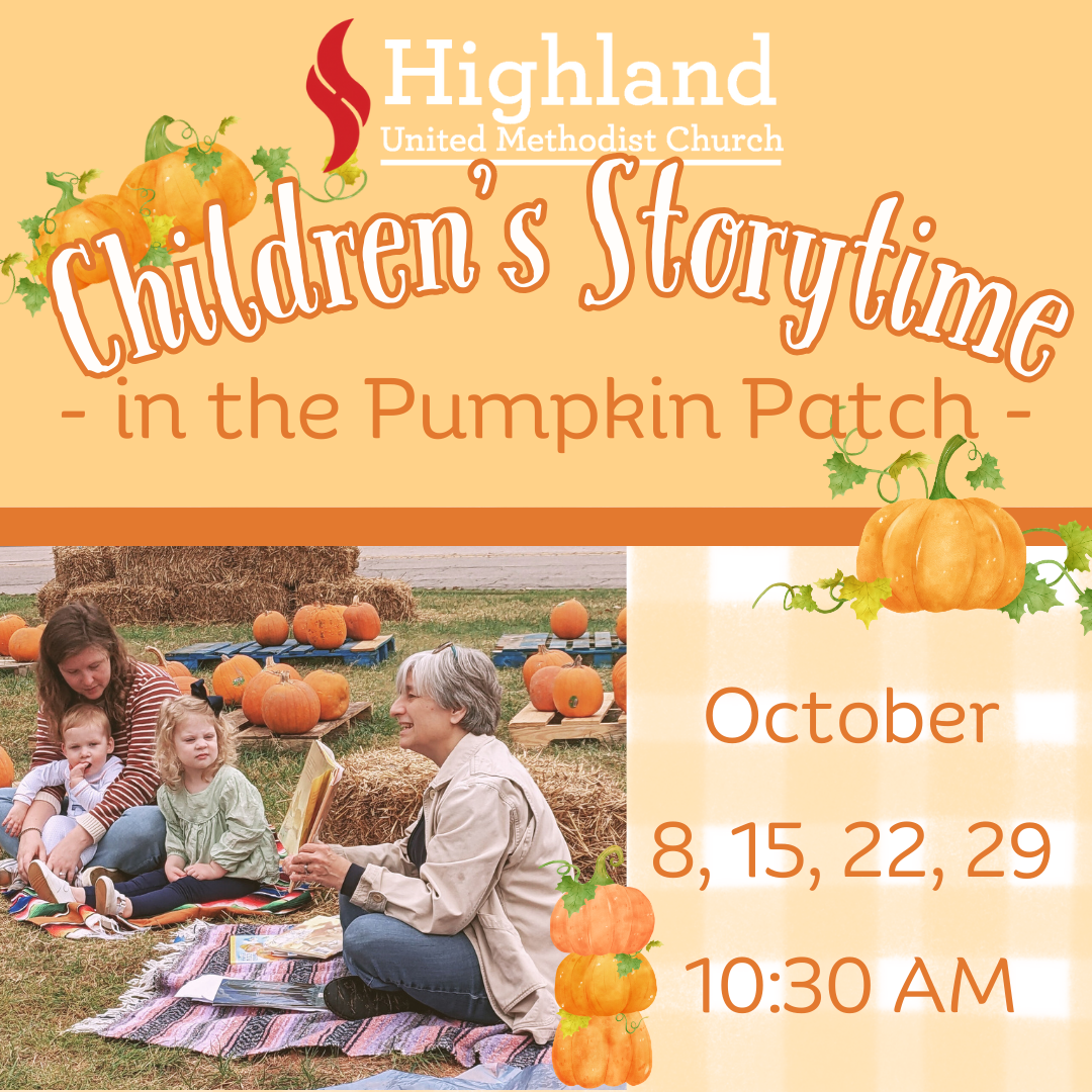 Highland United Methodist Church 1901 Ridge Rd, Raleigh, NCWednesdays, Oct. 8, 15, 22, 29, 10:30 AM Young children and their caregivers are invited to join us in the Pumpkin ...