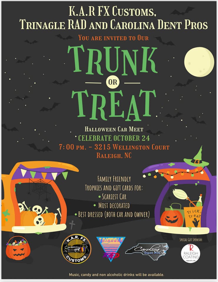 Join us for our annual Trunk or Treat car meet! Where: 3215 Wellington Court, Raleigh, NC This family-friendly event will ...