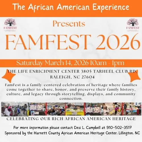 2026 State FamFest Event on March 14th in Raleigh, NC, is a celebration of family history and genealogy that will ...