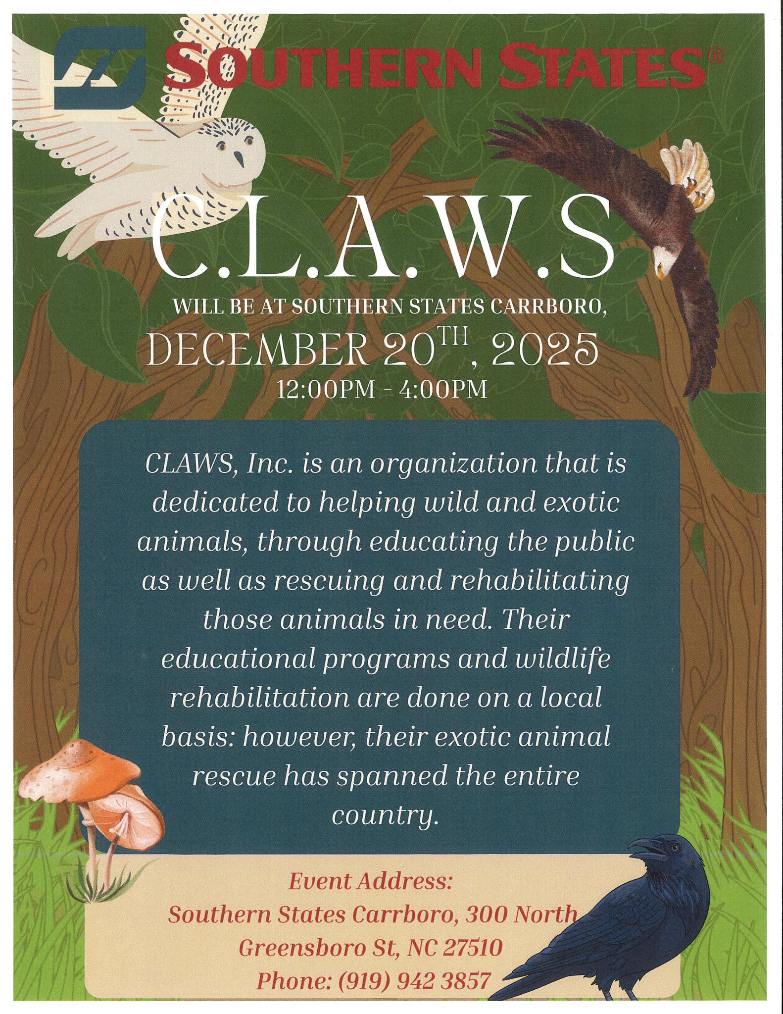Come by Southern States in Carrboro between 12PM and 4PM on Saturday, December 20th, to meet and learn about exotic ...