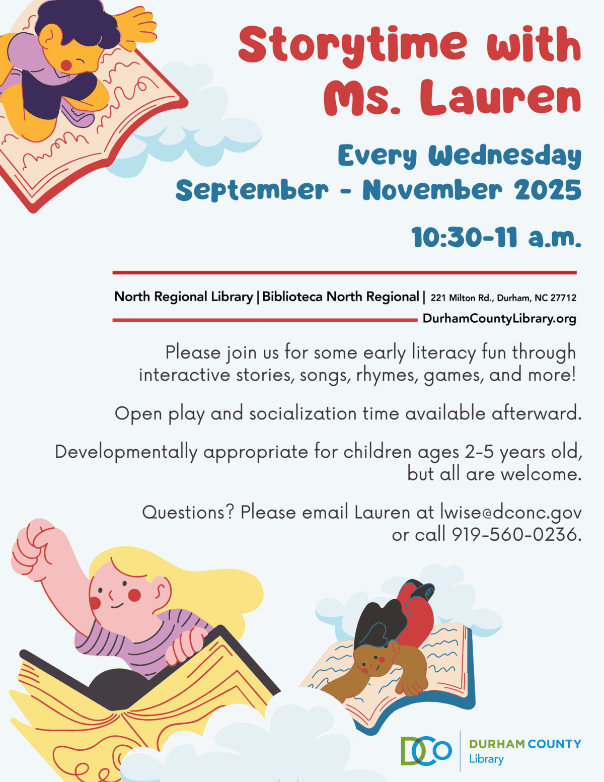 Green Road Community Library 4101 Green Road, Raleigh, NCAn interactive program with books, music, rhymes, and movement to nurture pre-reading skills.